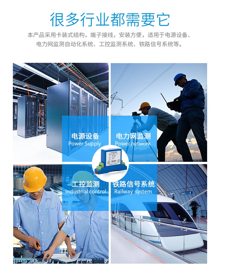 本產(chǎn)品采用特制隔離模塊,對(duì)電網(wǎng)和電路中的交流電流進(jìn)行實(shí)時(shí)測(cè)量,將其變換為標(biāo)椎的直流電流(Iz)輸出(兩線制);具有高精度、高隔離、寬頻響、低漂移、低功耗、溫度范圍寬、抗干擾能力強(qiáng)等特點(diǎn)。本產(chǎn)品采用卡裝式結(jié)構(gòu),端子接線,安裝方便,適用于電源設(shè)備、電力網(wǎng)監(jiān)測(cè)自動(dòng)化系統(tǒng)、工控監(jiān)測(cè)系統(tǒng)、鐵路信號(hào)系統(tǒng)等。
