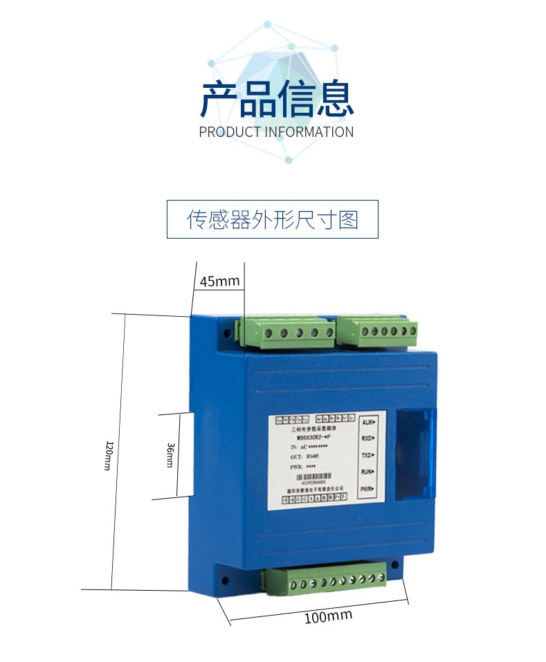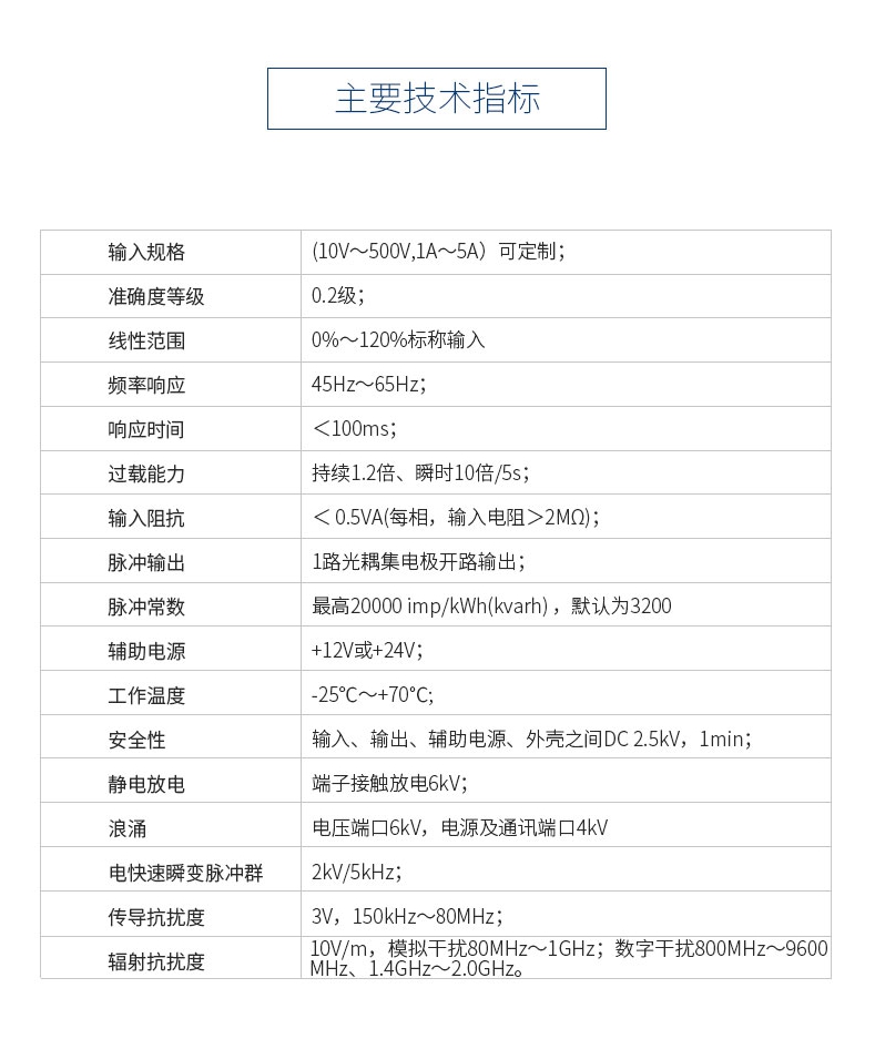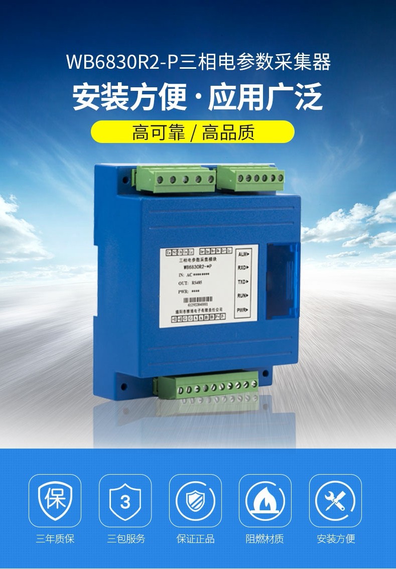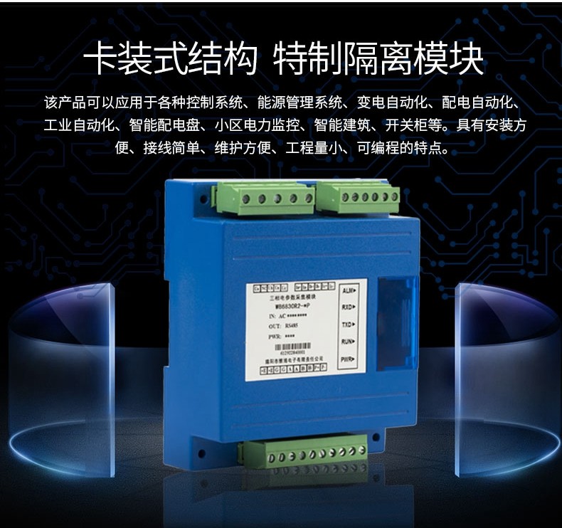 本產品可以監(jiān)測電網(wǎng)的電壓、電流、有無功功率、視在功率、功率因數(shù)、頻率等參數(shù)及錯相、斷相等電網(wǎng)運行狀態(tài);可計量正反向有無功電能、四象限無功電能、時段電能、月度電能;可分析電壓電流2-31次諧波含量及總諧波含量(THD)、電壓電流不平衡度及正序,負序、零序分量、電流K系數(shù)、電壓波峰系數(shù)等;可進行平均相電流、有無功功率、視在功率最大需量統(tǒng)計。使用本產品時須通過RS-485接口并按指定協(xié)議進行通訊,獲取所需的數(shù)字式電參量值。 作為一種先進的智能化、數(shù)字化的電網(wǎng)前端采集元件,該產品可以應用于各種控制系統(tǒng)、能源管理系統(tǒng)、變電自動化、配電自動化、工業(yè)自動化、智能配電盤、小區(qū)電力監(jiān)控、智能建筑、開關柜等。具有安裝方便、接線簡單、維護方便、工程量小、可編程的特點。
