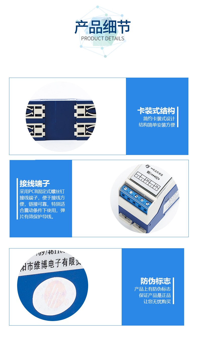 本產(chǎn)品采用特制隔離模塊,對(duì)電網(wǎng)和電路中的交流電流進(jìn)行實(shí)時(shí)測(cè)量,將其變換為0~5V、0~10V或1V~5V直流電壓(Uz)輸出;具有高精度、高隔離、低功耗、低漂移、溫度范圍寬、抗干擾能力強(qiáng)等特點(diǎn)。本產(chǎn)品采用卡裝式結(jié)構(gòu),端子接線,安裝方便,使用交流220V電源供電,輸入、輸出、電源之間兩兩隔離。